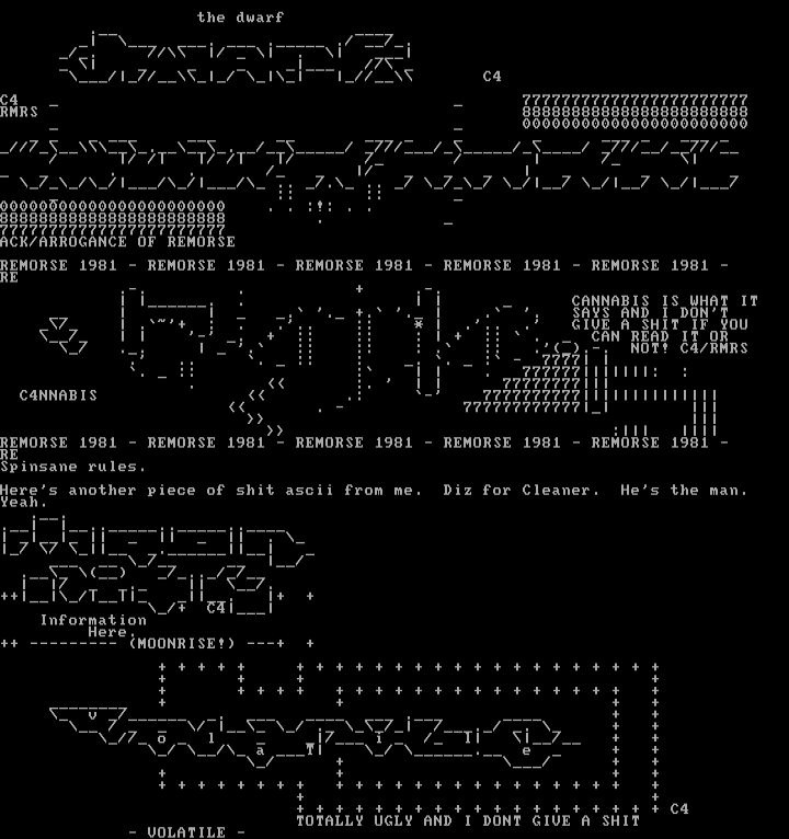 Heres another piece of shit ascii from me. Diz for Cleaner. Hes the man.