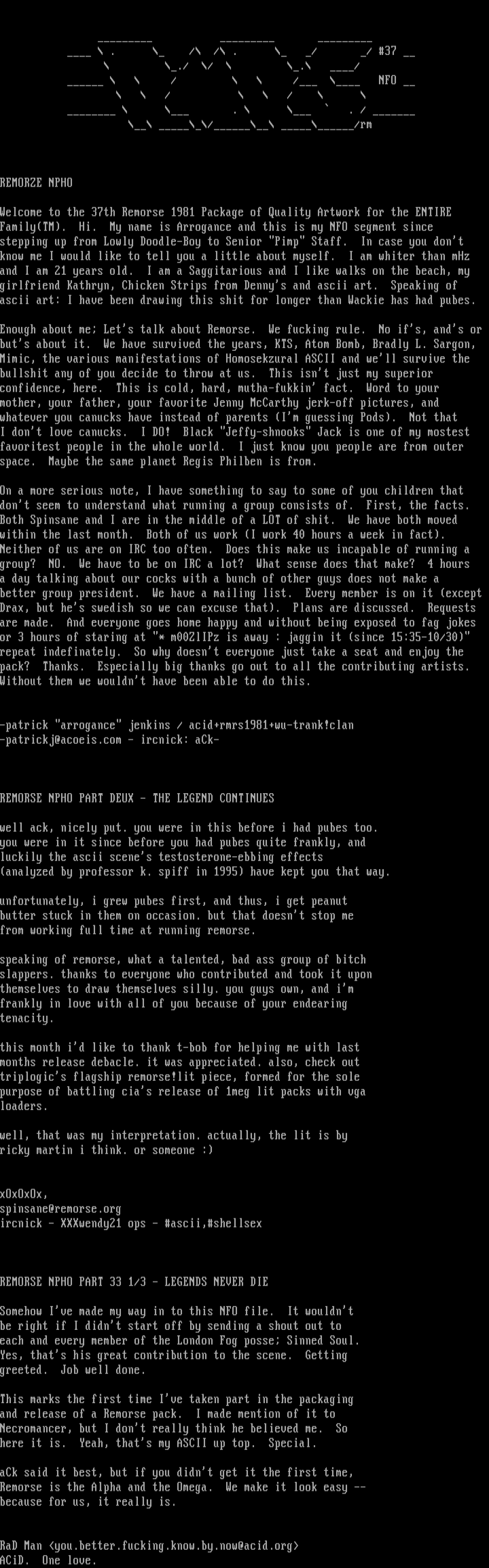 Enough about me Lets talk about Remorse. We fucking rule. No ifs, ands or