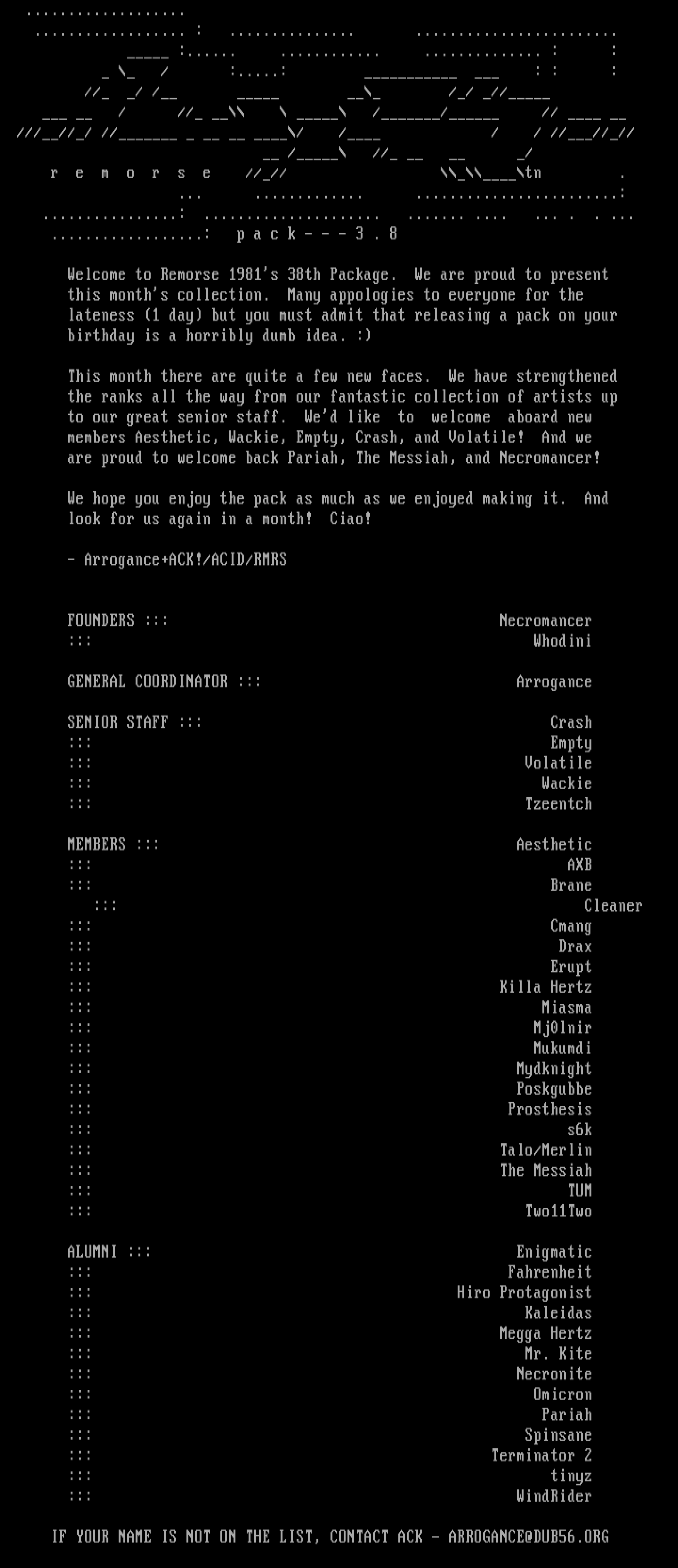 Welcome to Remorse 1981s 38th Package. We are proud to present