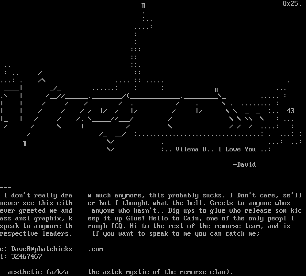 ass ansi graphix, k eep it up Glue! Hello to Cain, one of the only peopl I