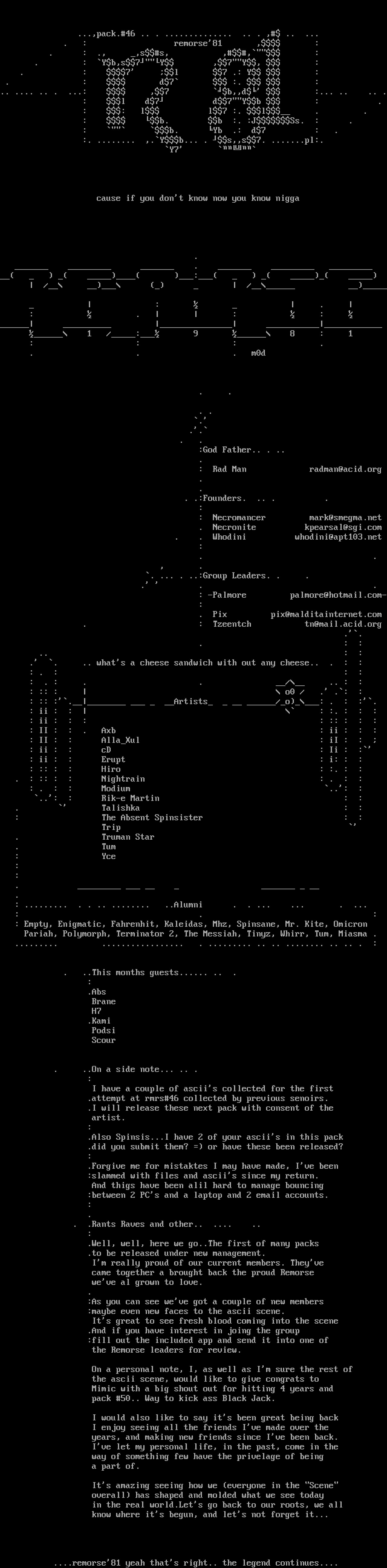 Pariah, Polymorph, Terminator 2, The Messiah, Tinyz, Whirr, Tum, Miasma .