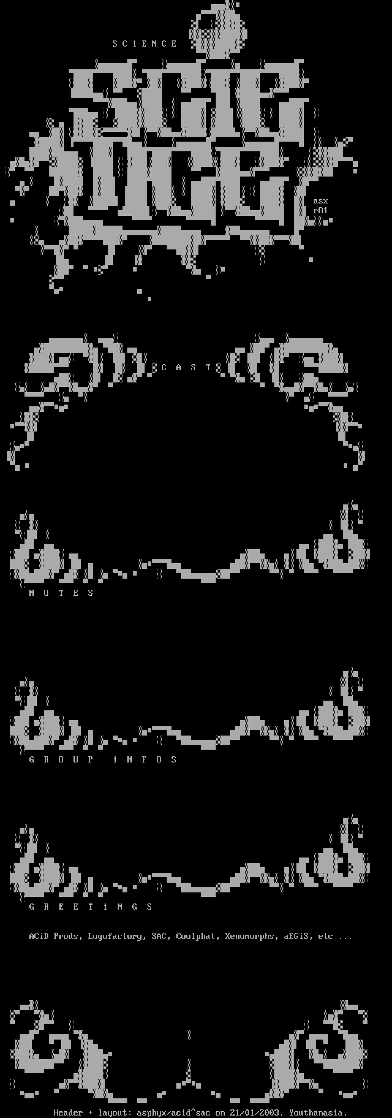 ACiD Prods, Logofactory, SAC, Coolphat, Xenomorphs, aEGiS, etc ...