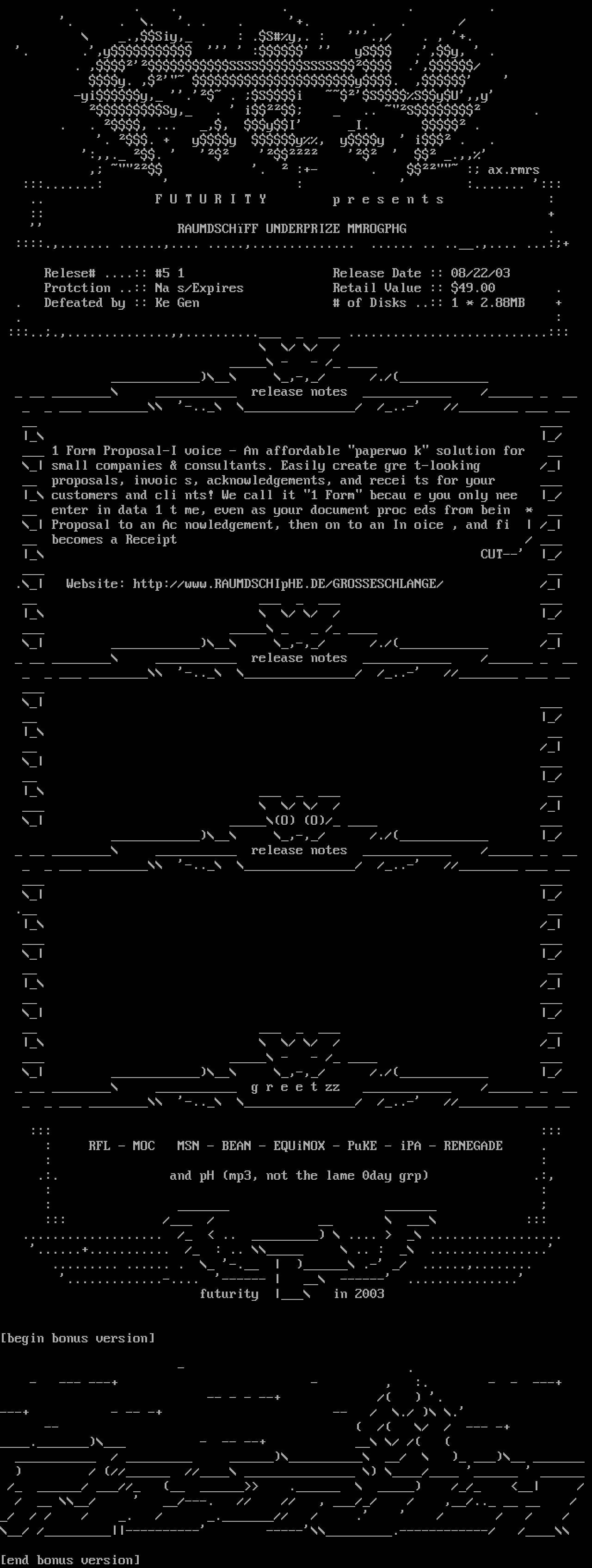 : RFL - MOC MSN - BEAN - EQUiNOX - PuKE - iPA - RENEGADE .