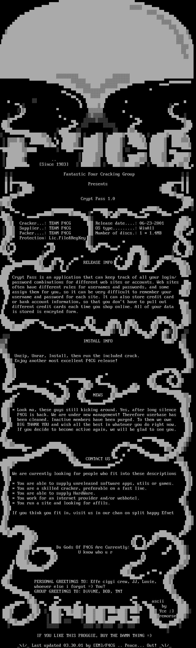Cracker...: TEAM F4CG Release date....: 06-23-2001