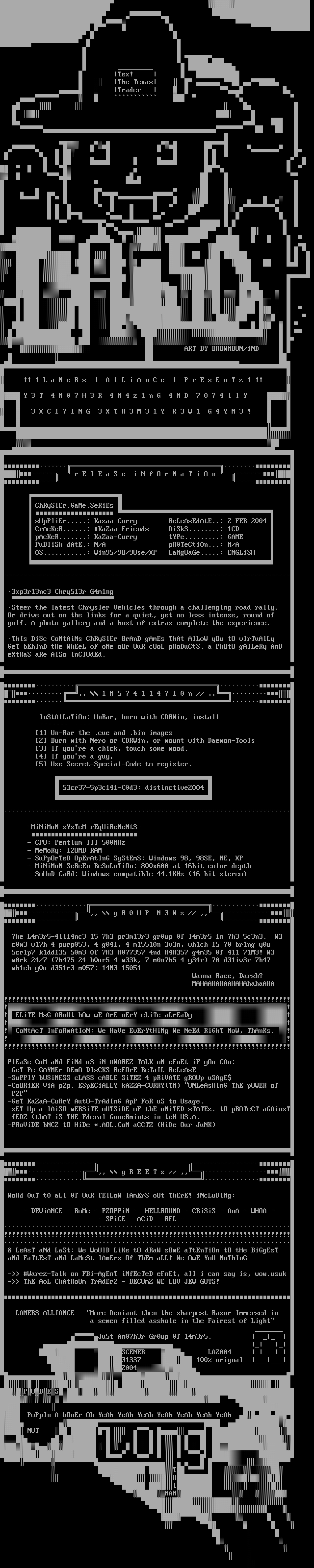 ThIs DiSc CoNtAiNs ChRySlEr BrAnD gAmEs ThAt AlLoW yOu tO vIrTuAlLy