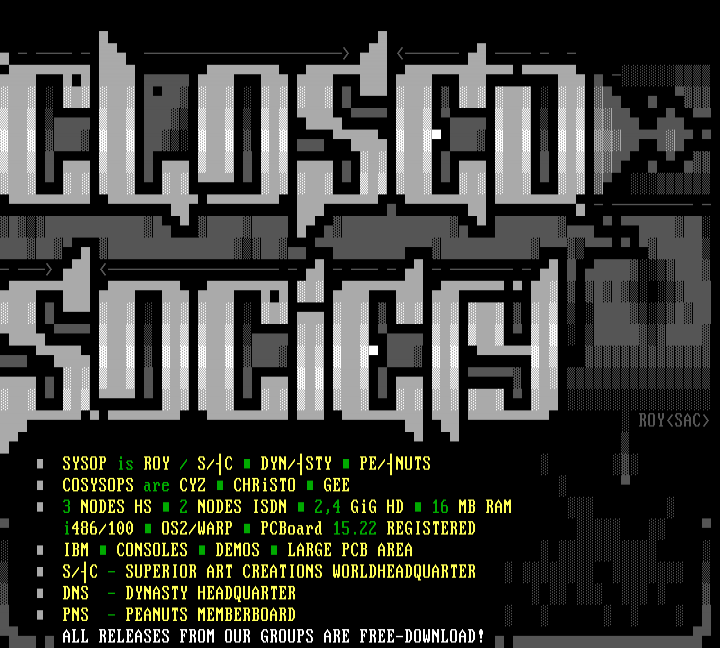 SYSOP is ROY / S/C DYN/STY PE/NUTS