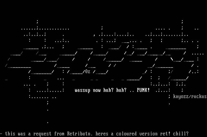 : ....:.....: wassup now huh? huh? .. PUNK! ....:
