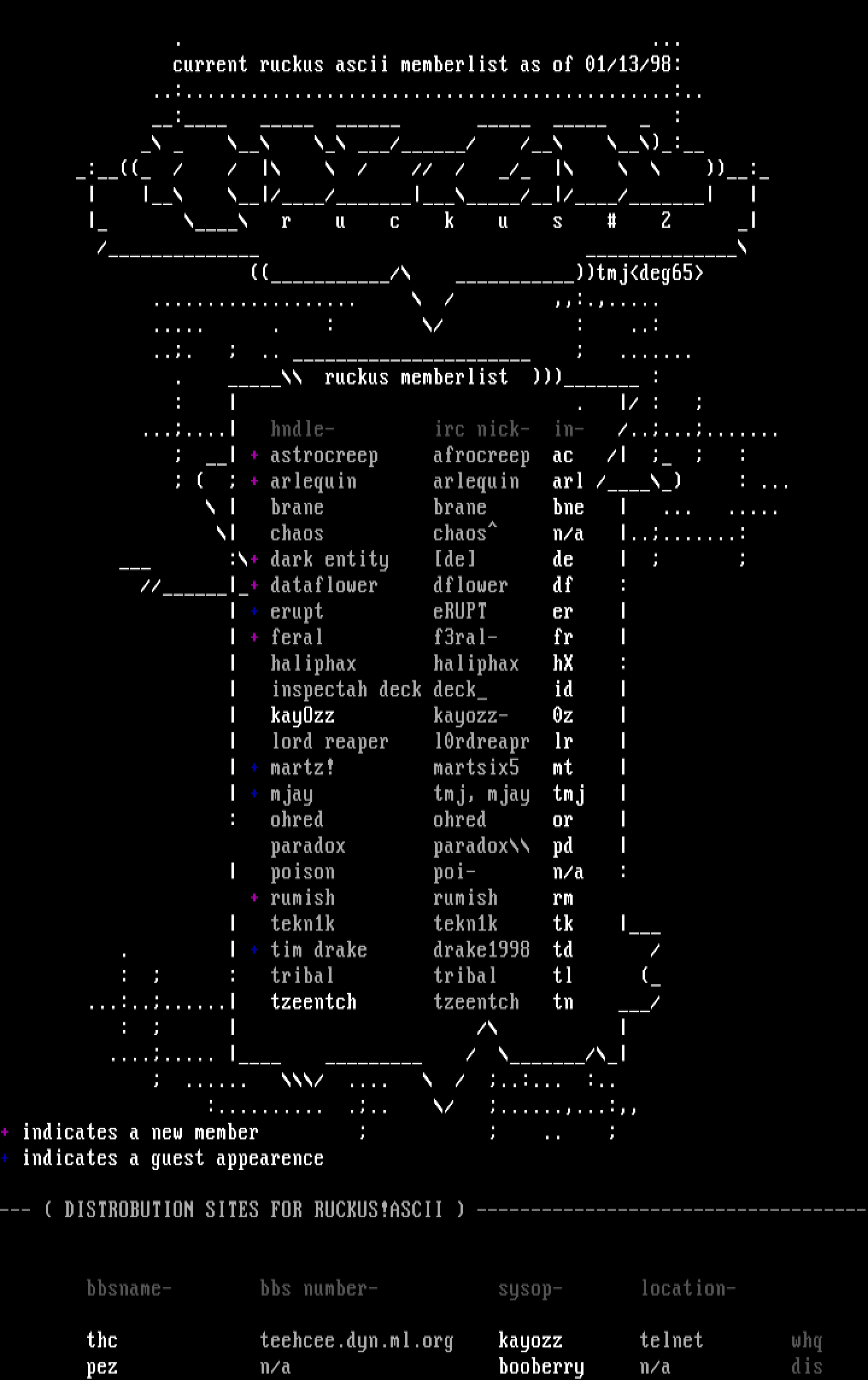 --- DISTROBUTION SITES FOR RUCKUS!ASCII ------------------------------------