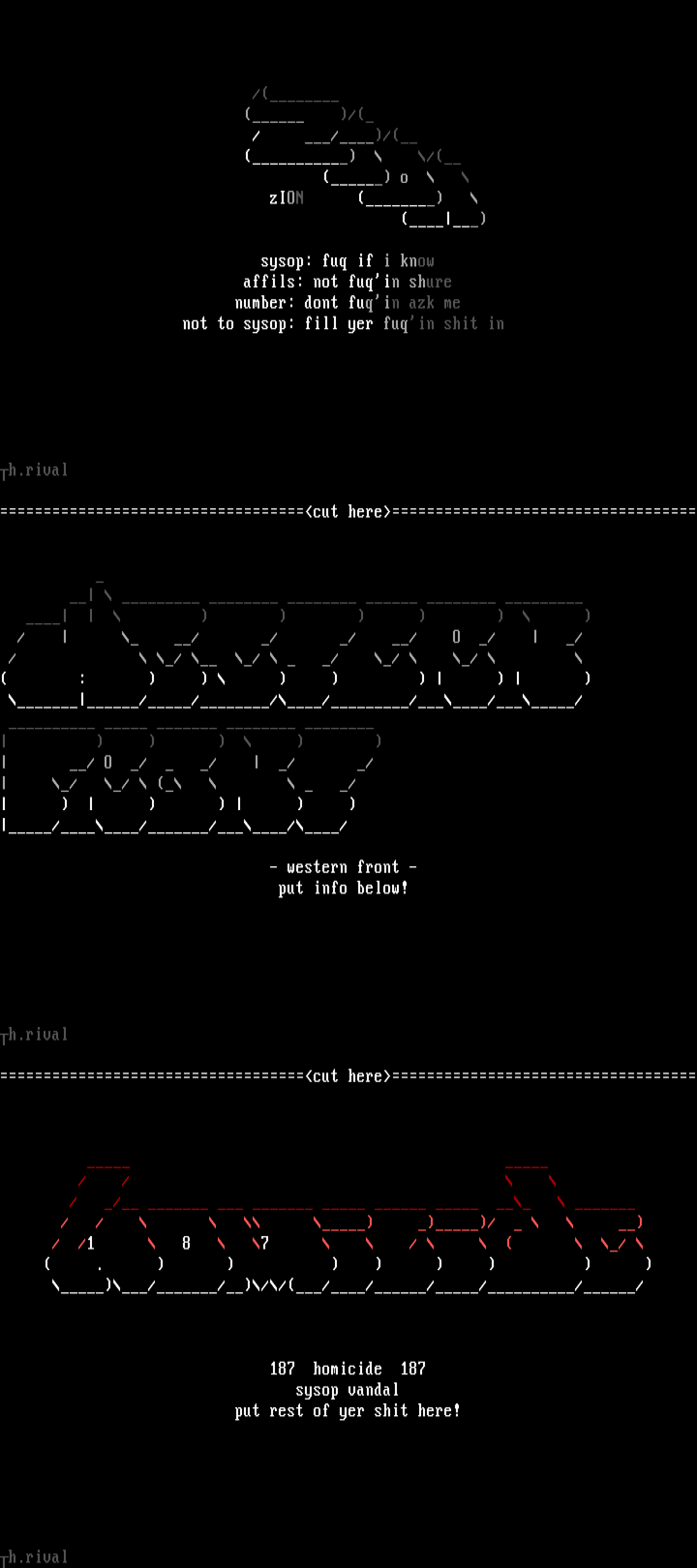 zION sysop: fuq if i know affils: not fuqin shure number: dont fuqin azk me