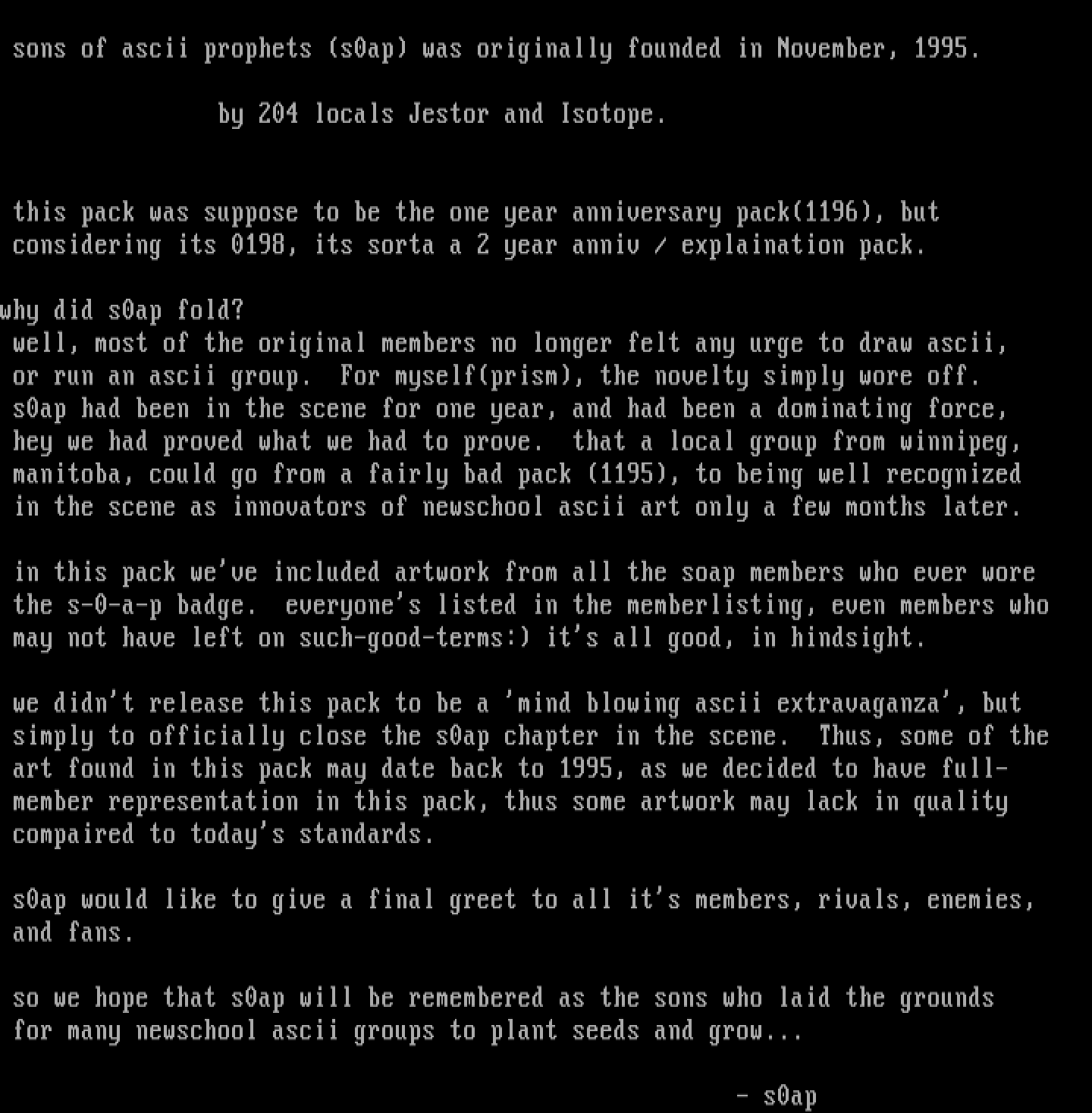 sons of ascii prophets s0ap was originally founded in November, 1995.