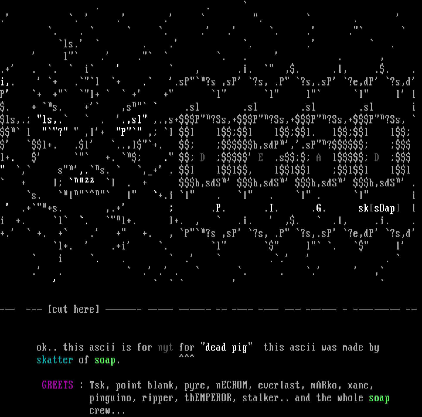 ok.. this ascii is for nyt for dead pig this