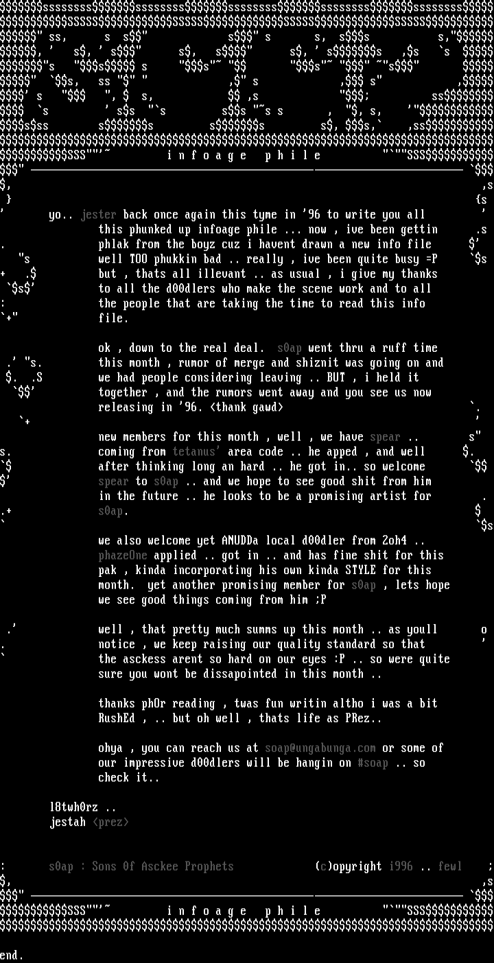 : s0ap : Sons 0f Asckee Prophets copyright i996 .. fewl , ,s - SSS i n f o a g e p h i l e SSS