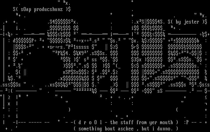 ---- ----- -- - - d r o O l - the stuff from yer mouth :P -- - +