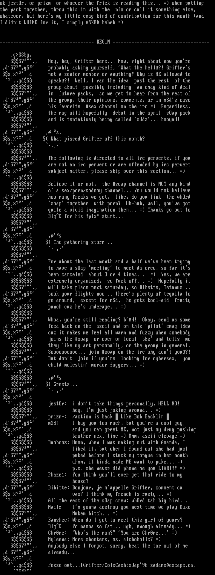 .,gd Posse out...Grifter/ColeCash:sOap96:sadams@escape.ca