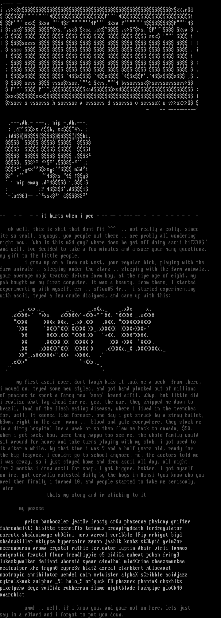 right now. who is this mSd guy? where does he get off doing ascii biTZ?@
