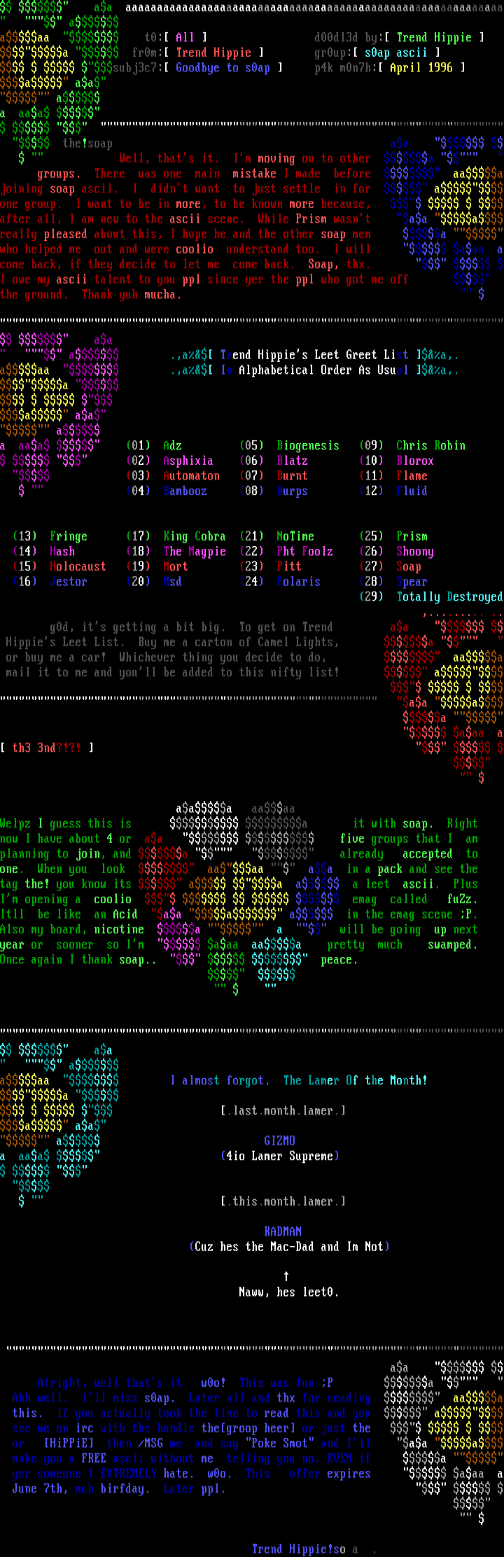 a fr0m: Trend Hippie gr0up: s0ap ascii
