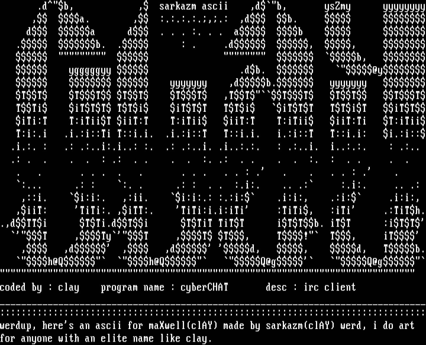 ::::::::::::::::::::::::::::::::::::::::::::::::::::::::::::::::::::::::::::::::werdup, heres an ascii for maXwellclAY made by sarkazmclAY werd, i do art