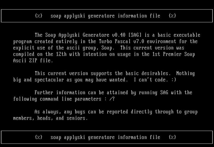 The Soap Applyski Generatore v0.40 SAG is a basic executable