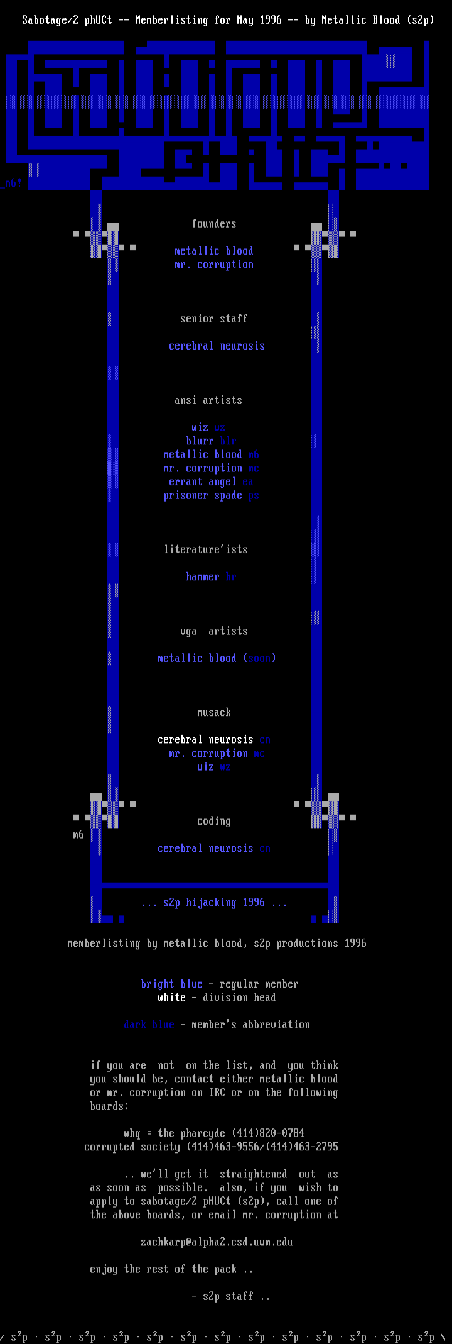 Sabotage/2 phUCt -- Memberlisting for May 1996
