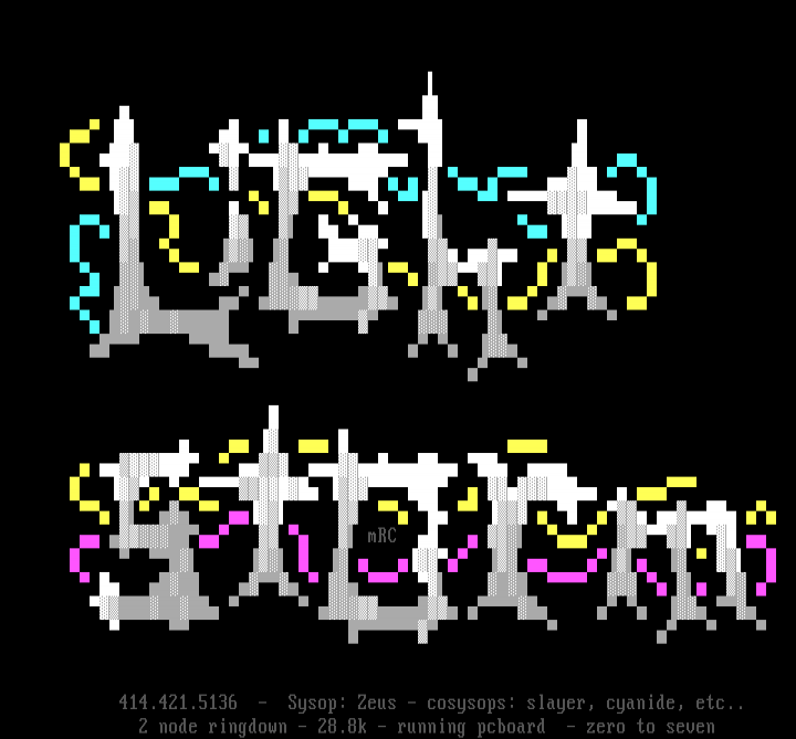 414.421.5136 - Sysop: Zeus - cosysops: slayer, cyanide