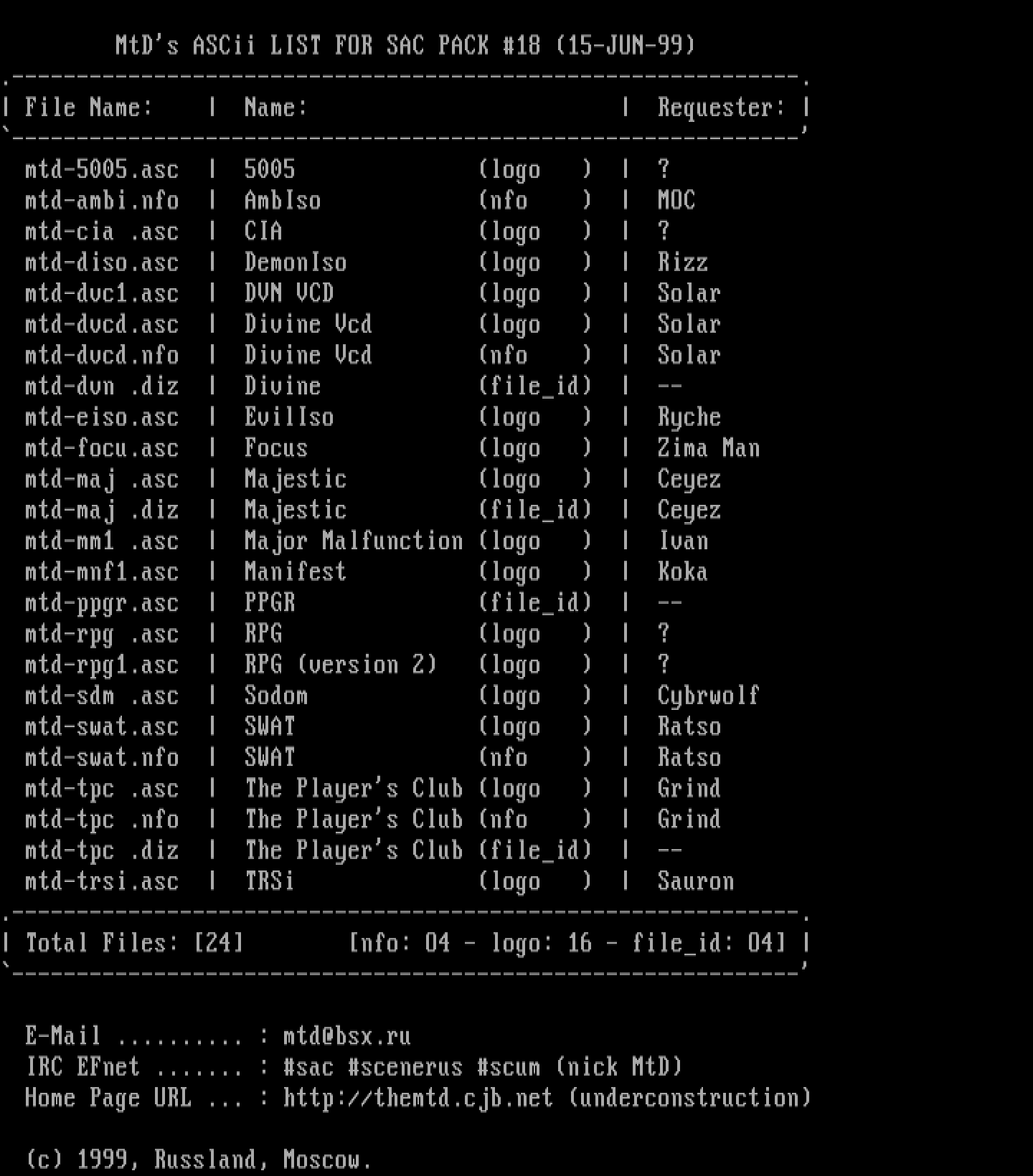 MtDs ASCii LIST FOR SAC PACK 18 15-JUN-99