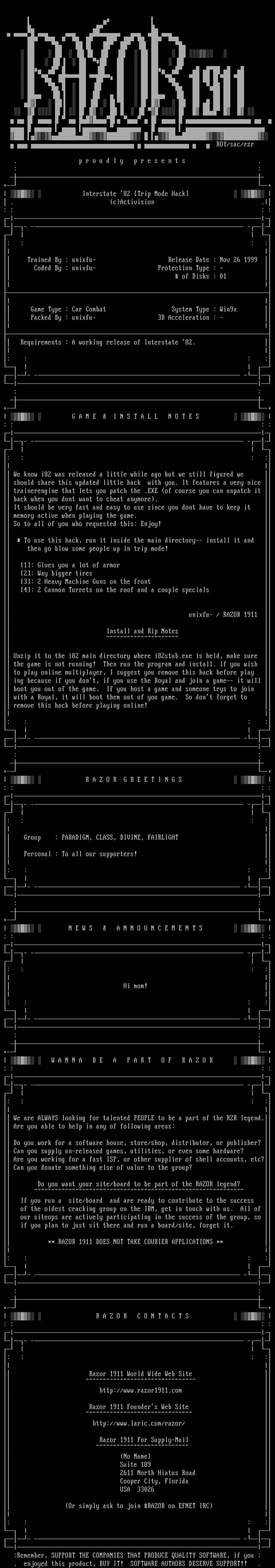 Razor 1911 World Wide Web Site