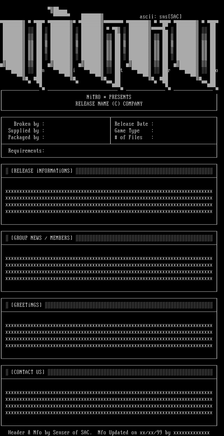 Header Nfo by Senser of SAC. Nfo Updated on xx/xx/99 by xxxxxxxxxxxxx