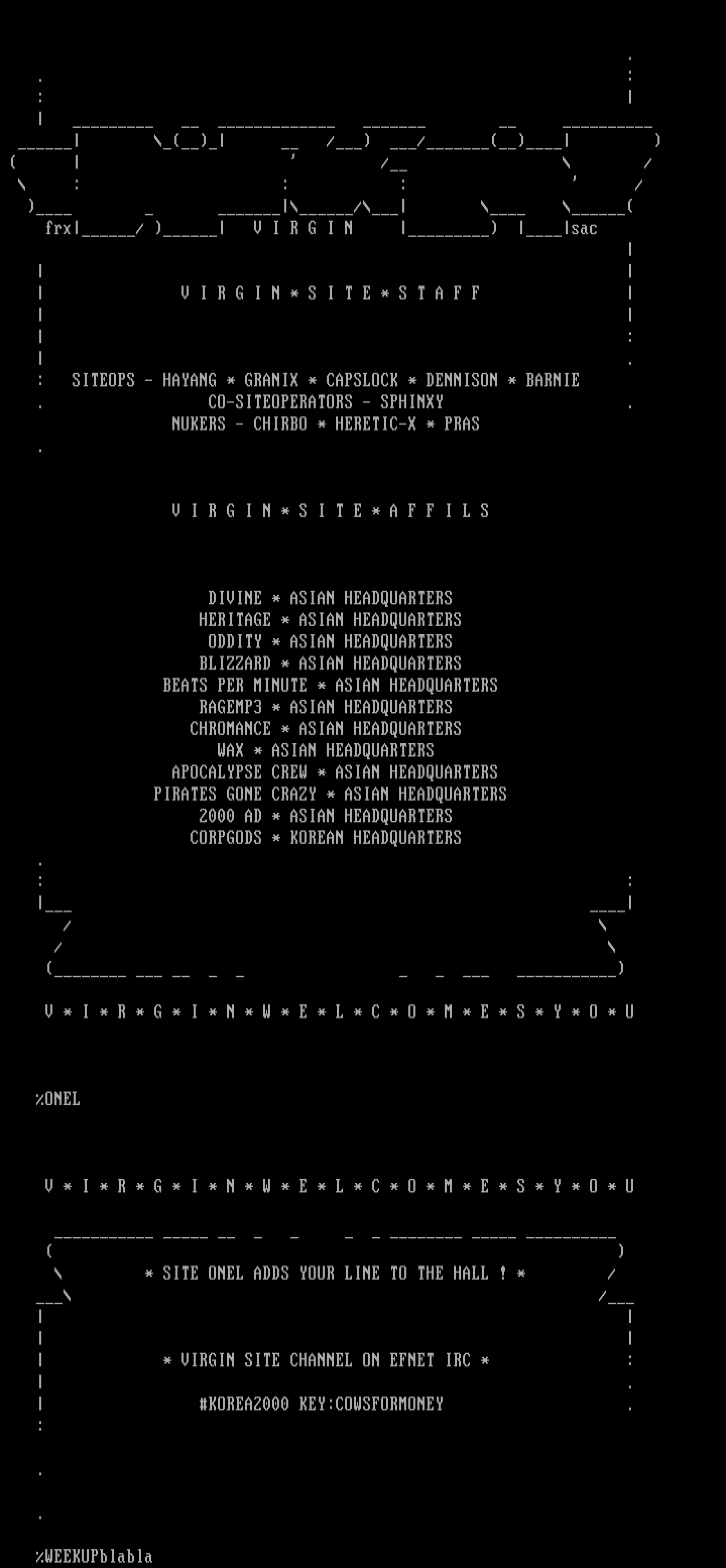 * VIRGIN SITE CHANNEL ON EFNET IRC * :