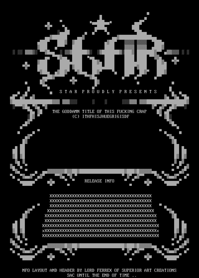 NFO LAYOUT AND HEADER BY LORD FERREX OF SUPERIOR ART CREATIONS