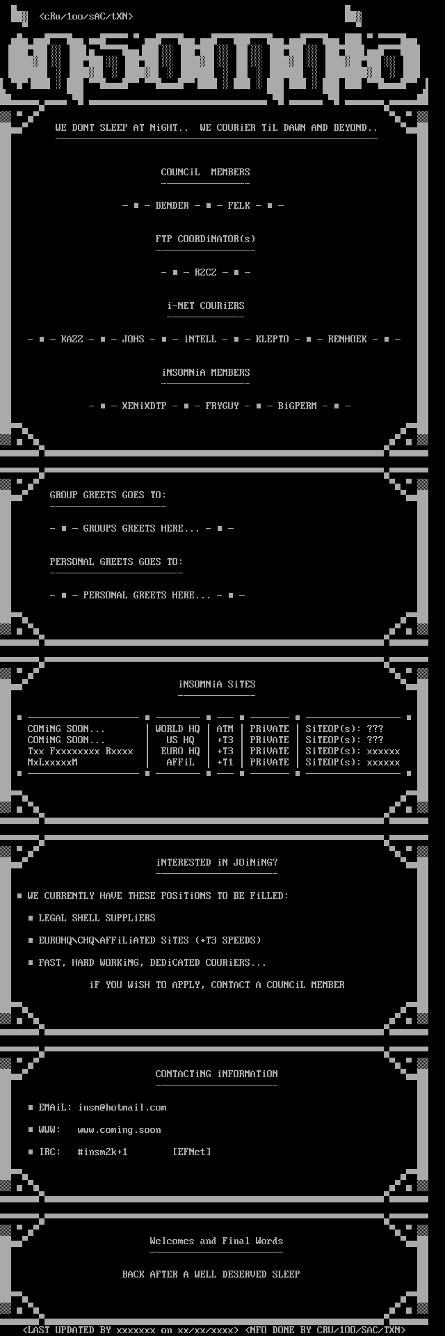 LAST UPDATED BY xxxxxxx on xx/xx/xxxx NFO DONE BY CRU/1OO/SAC/TXN