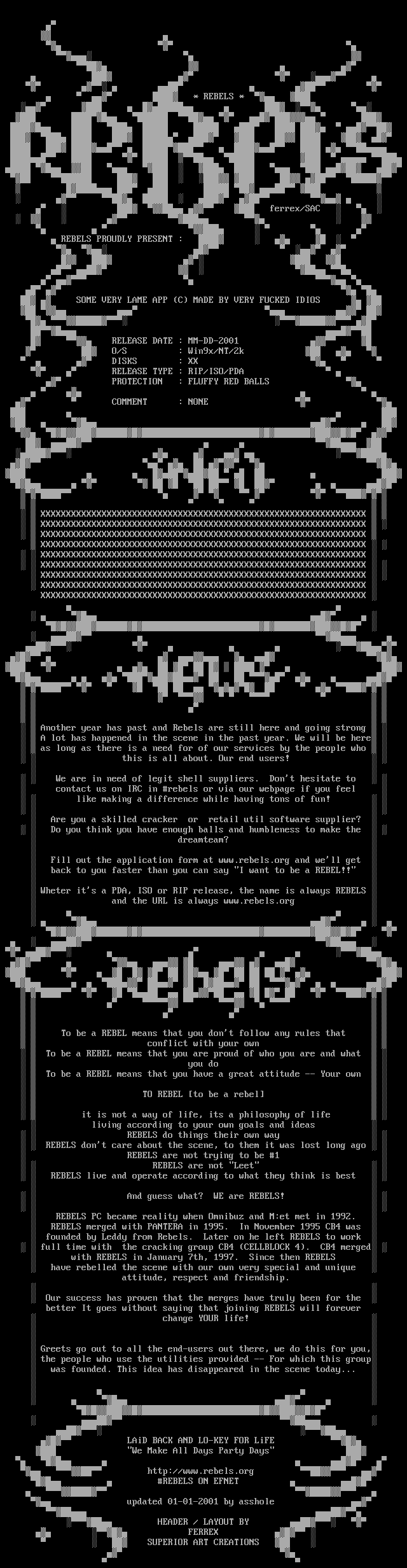 Wheter its a PDA, ISO or RIP release, the name is always REBELS