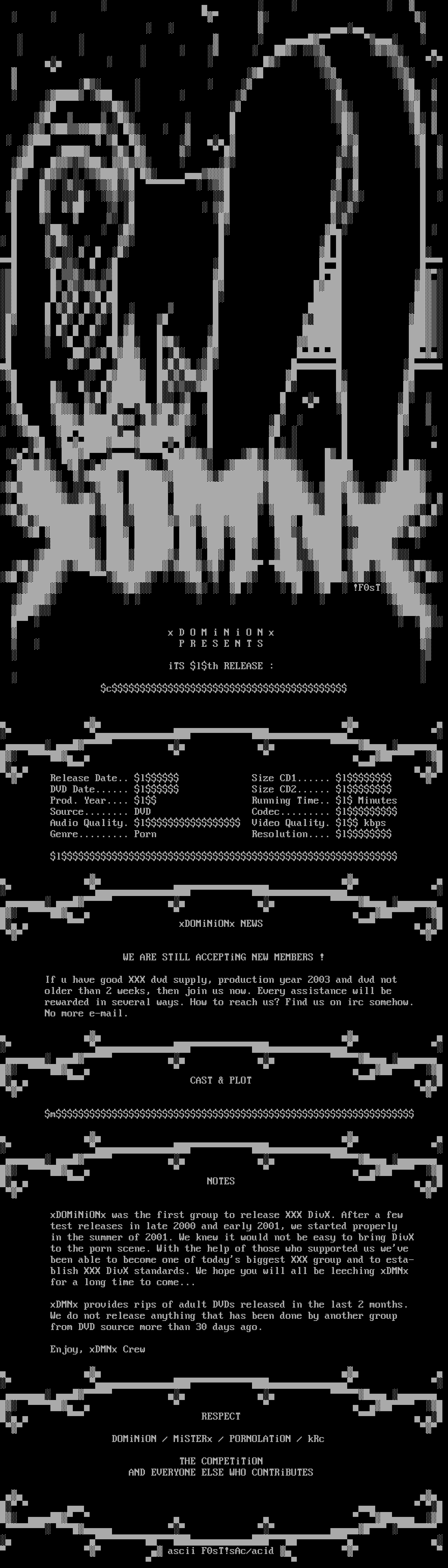 xDOMiNiONx was the first group to release XXX DivX. After a few