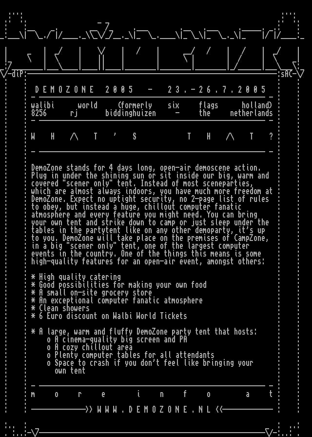 : : DemoZone stands for 4 days long, open-air demoscene action. : :