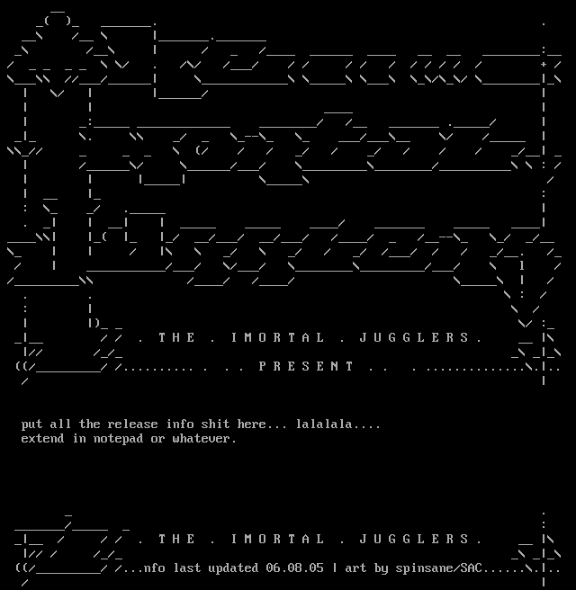// /...nfo last updated 06.08.05 art by spinsane/SAC.........