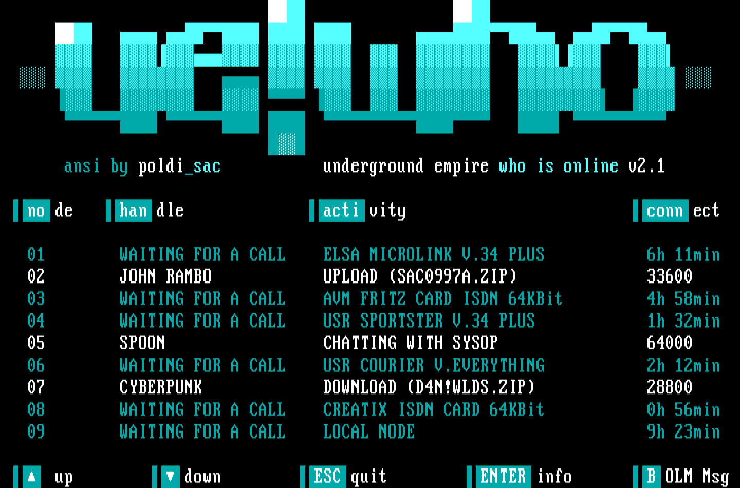 ansi by poldisac underground empire who is online v2.1