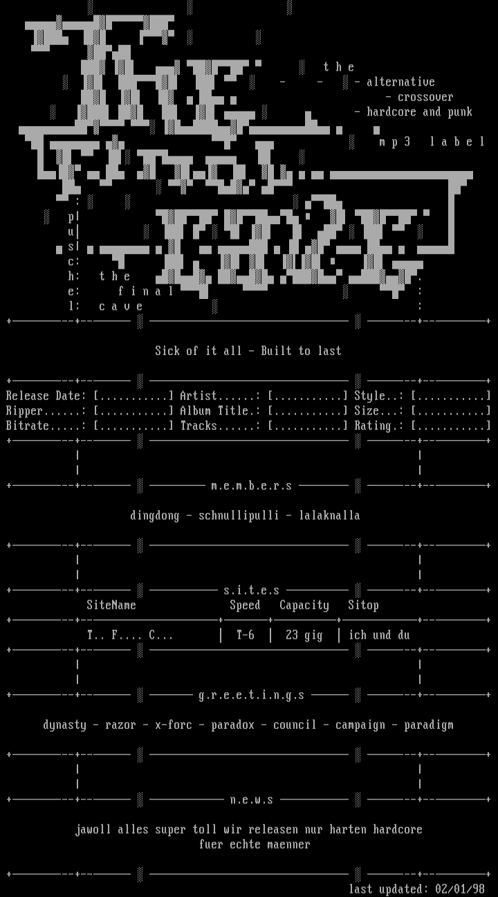 Bitrate.....: ........... Tracks......: ........... Rating.: ...........