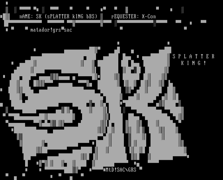 nAME: SK sPLATTER kING bBS rEQUESTER: X-Con