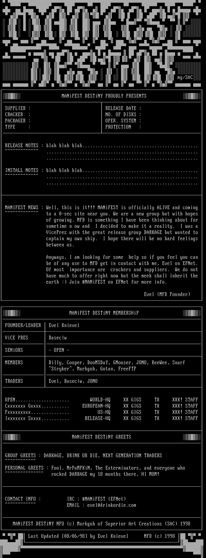 MANiFEST DESTiNY NFO c Markgoh of Superior Art Creations SAC 1998
