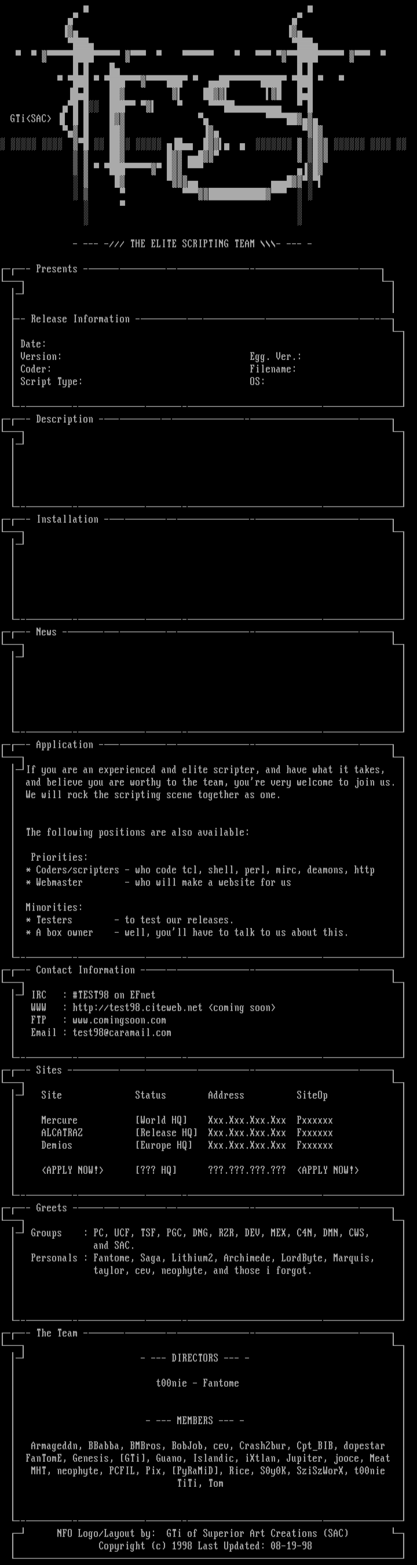 NFO Logo/Layout by: GTi of Superior Art Creations SAC
