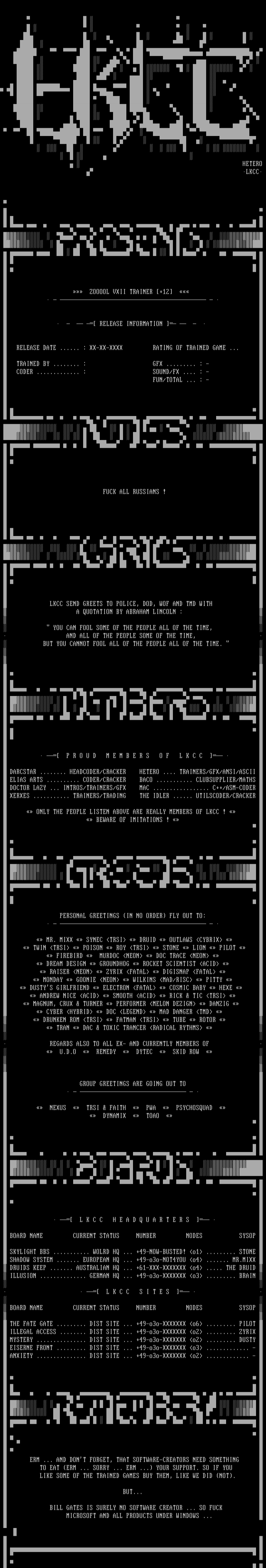 DARCSTAR ........ HEADCODER/CRACKER HETERO .... TRAINERS/GFX/ANSI/ASCII