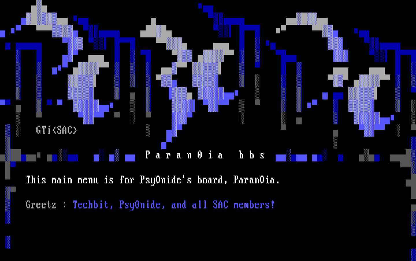 This main menu is for Psy0nides board, Paran0ia. Greetz : Techbit, Psy0nide, and all SAC members!