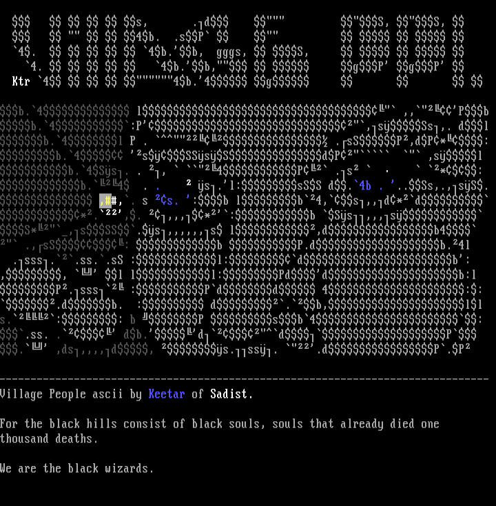 ------------------------------------------------------------------------------- Village People ascii by Keetar of Sadist.