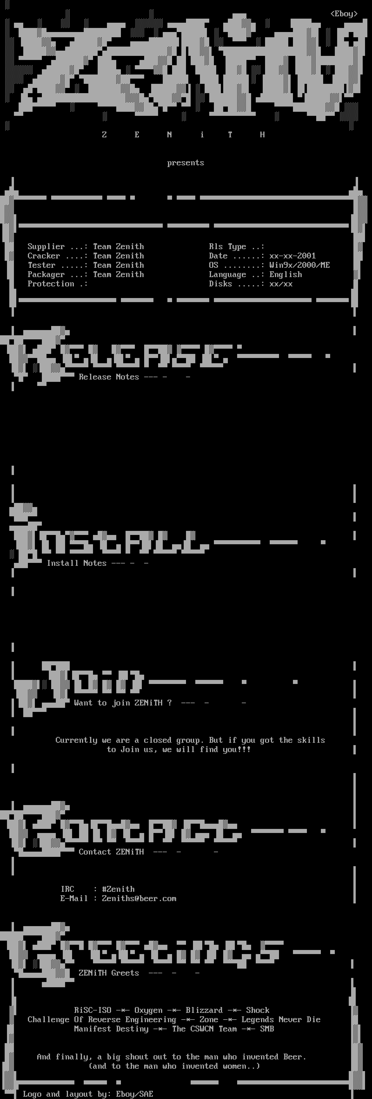 Cracker ....: Team Zenith Date ......: xx-xx-2001