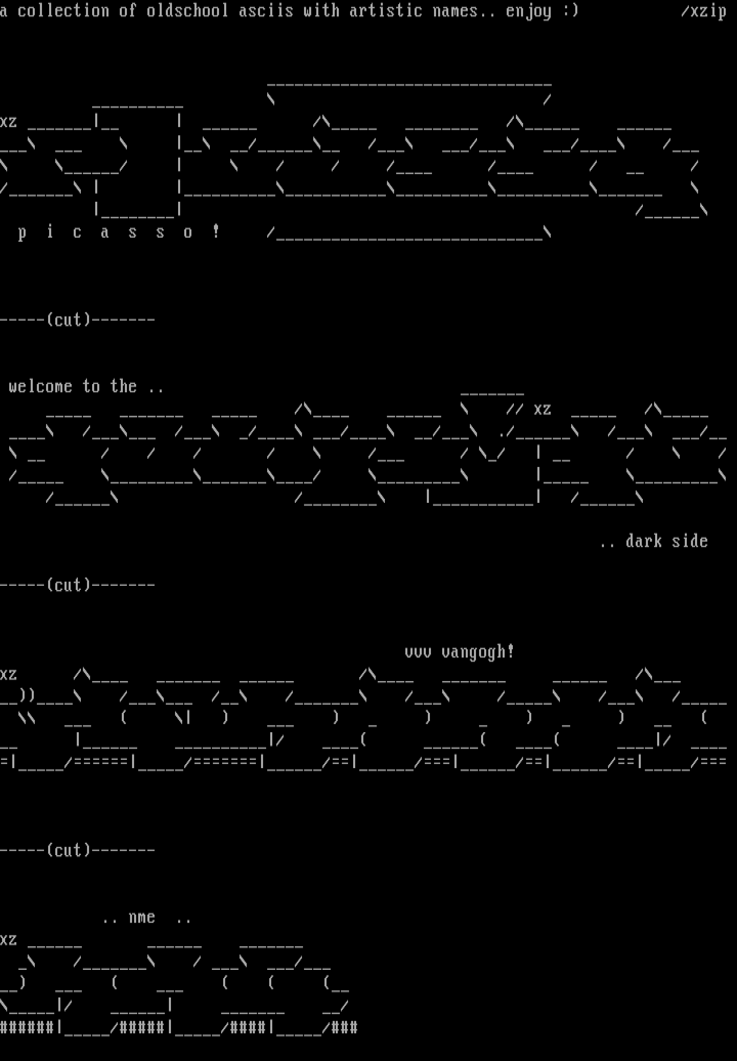 a collection of oldschool asciis with artistic names.. enjoy : /xzip