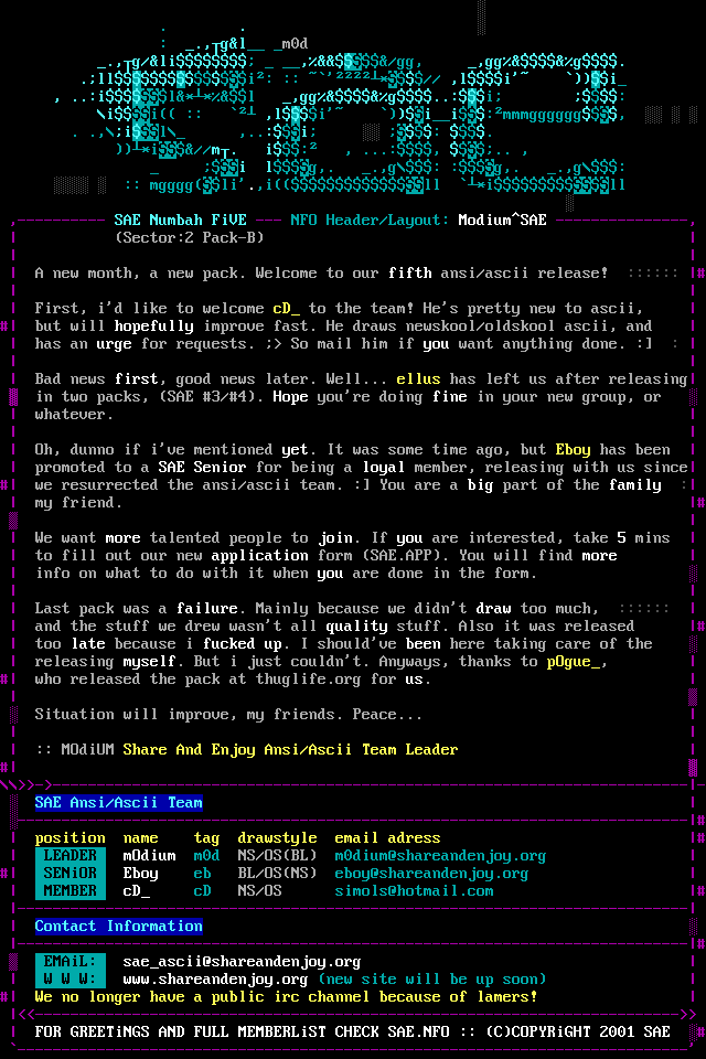 ,---------- SAE Numbah FiVE --- NFO Header/Layout: ModiumSAE ---------------,