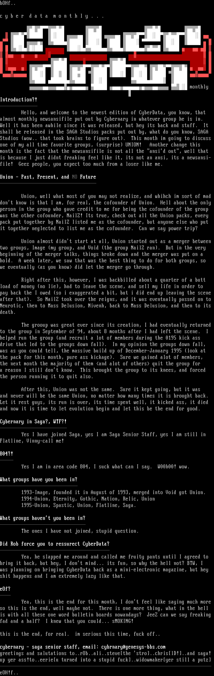 almost monthly newsansifile put out by Cybernary in whatever group