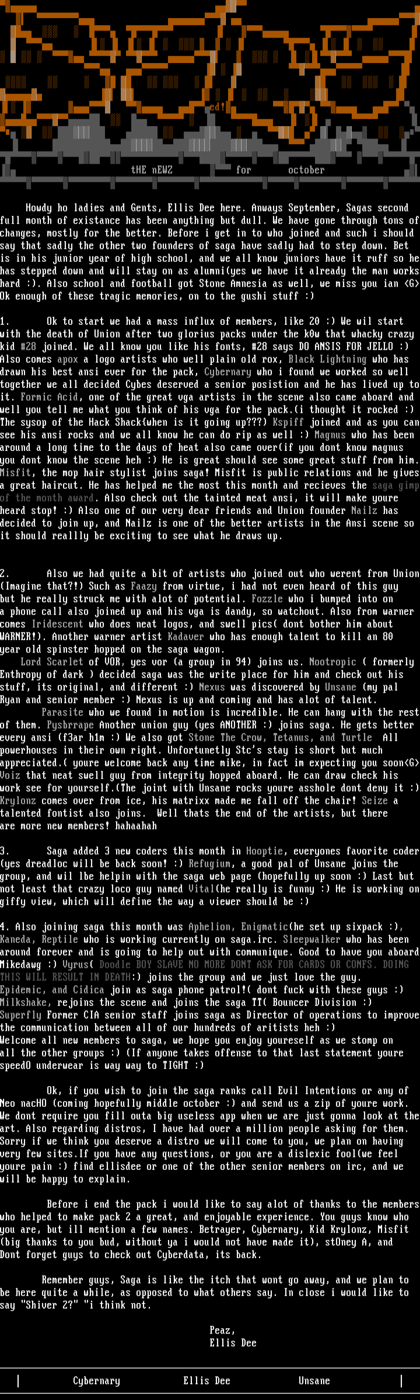 together we all decided Cybes deserved a senior posistion and he has lived up toit. Formic Acid, one of the great vga artists in the scene also came aboard and
