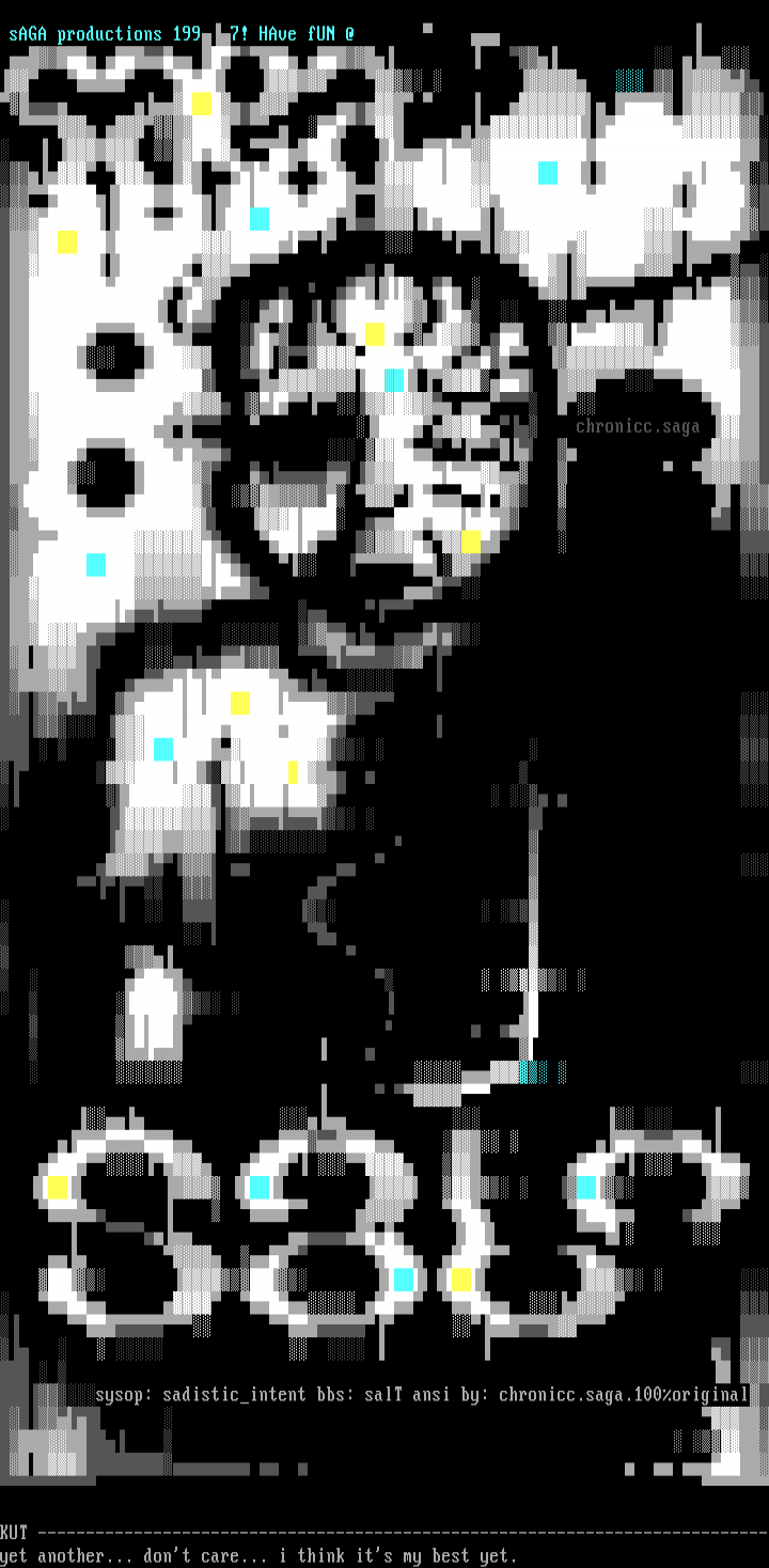 sysop: sadisticintent bbs: salT ansi by: chronicc.saga.100original