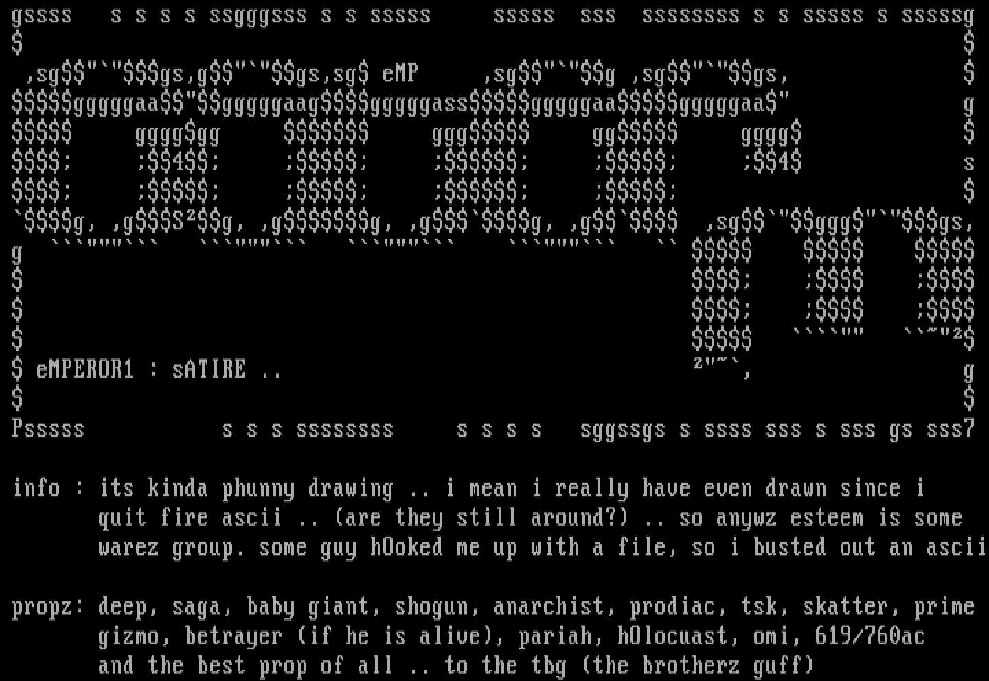 warez group. some guy hOoked me up with a file, so i busted out an ascii