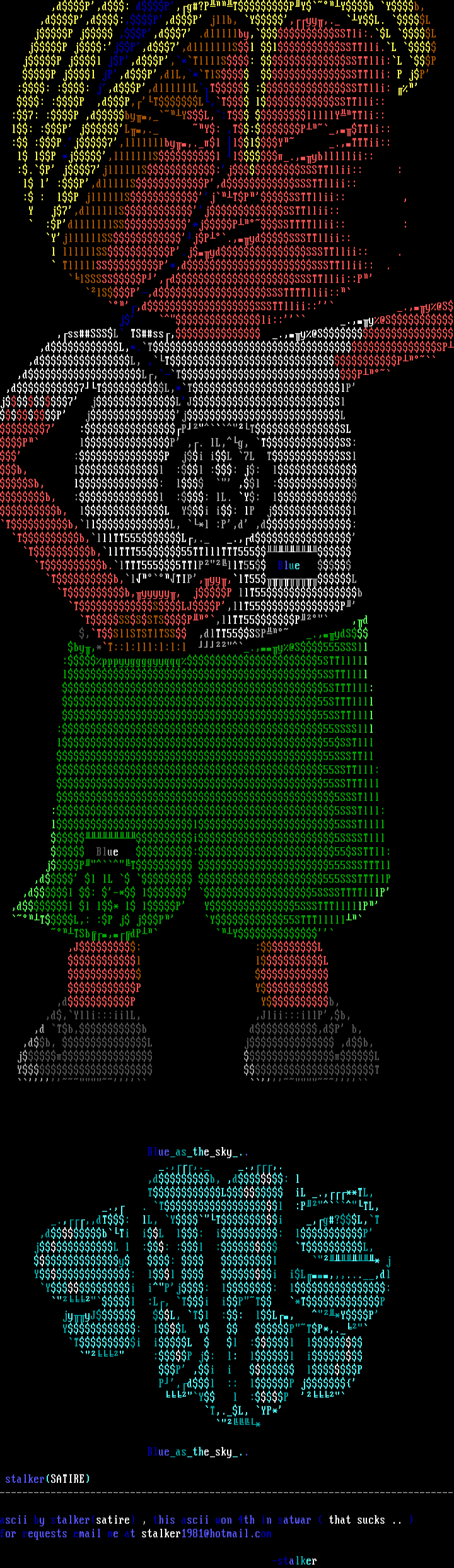 ascii by stalkersatire , this ascii won 4th in satwar that sucks ..